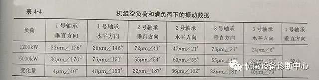 表4-4給出了大、小負荷兩種工況下的振動數據。從表中可以看出: